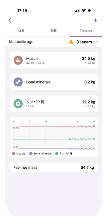 アプリに接続しないと、体重計は測定結果を保存しないため、過去の結果と比較して評価することはできません。